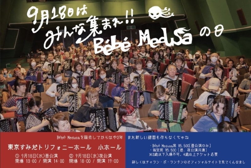 9/18(水)にすみだトリフォニーホール 小ホールにて開催される「蛇腹談義祭り2024」のBébé Medusa 4次受付が8/26(月)午前10時から開始!